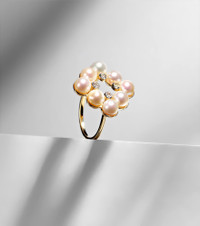 Taking design cues from modern art, Mateo's exquisite fine jewelry makes tying an outfit together so easy. Perfect for elegant soirees, the Cluster ring is crafted from 14kt gold and adorned with eye-catching pearls and white diamonds. Product Details - Material: 14kt yellow gold - Made in the USA - Pearl: 5.0mm, freshwater - Stone I: diamonds, round-cut, prong setting, SI clarity grade, 0.1ct - Item number: P01011905