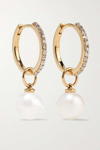 EDITORS'NOTES The moving parts of Mateo's fine jewelry are what makes its collections so special and unique - these hoop earrings have lustrous freshwater pearl pendants that can be removed when you prefer a simpler design. Crafted from 14-karat gold, they're set with 0.127-carats of sparkling diamonds and are dainty enough for everyday wear. Show yours off with swept-back hair.<br><br>Shown here with: [Khaite Knitwear id1148259], [Mateo Earrings id1187654], [Mateo Necklace id1187650]. SIZE & FIT This item's measurements are: - Drop: 2cm / 0.8in - Length: 2cm / 0.8in - Height: 2cm / 0.8in - Width: 0.6cm / 0.2in DETAILS & CARE - Diamonds, total weight: 0.127-carats; freshwater pearls - Post fastenings for pierced ears - Freshwater pearls: China