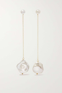 EDITORS'NOTES Mateo's Matthew Harris is inspired by modern art and naturally occurring abstract forms - these 'Duality' earrings are strung with freshwater pearl drops. Designed to graze your jawline, they've been handmade in the brand's New York studio from 14-karat gold and deserve to be shown off with your other finest pieces. SIZE & FIT This item’s measurements are: - Length: 9.5cm / 3.7in - Width: 1.8cm / 0.7in DETAILS & CARE - Butterfly fastening for pierced ears - Freshwater pearls: China - This piece has been certified in accordance with the Hallmarking Act 1973