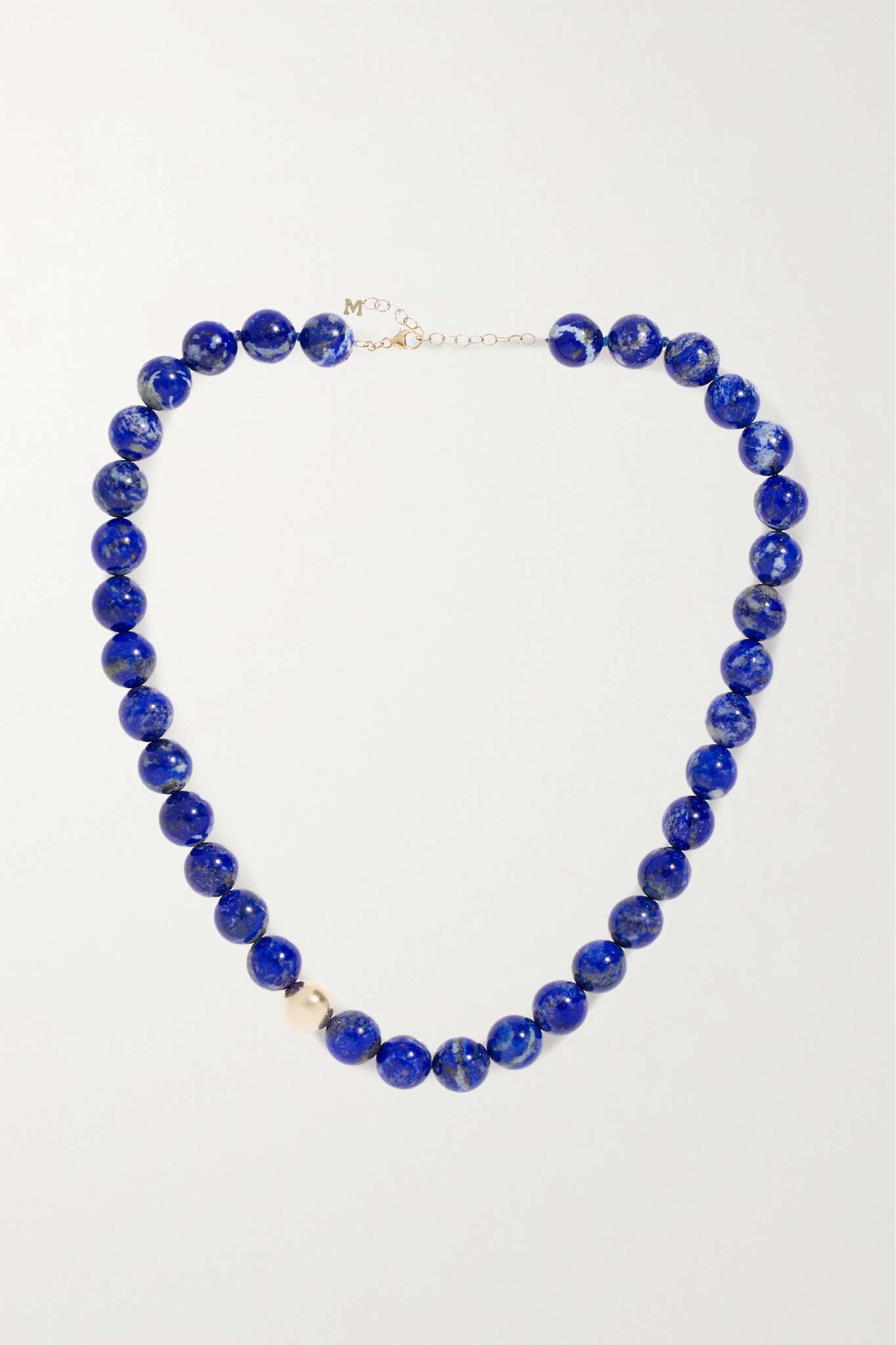 EDITORS'NOTES Drawing inspiration from modern art, Mateo's fine jewelry collections focus on simplicity and minimalism. This 14-karat gold necklace is strung with vibrant lapis lazuli beads and has the label's signature 'M' charm at the adjustable fastening. Wear it with your favorite tees and knitted tanks, or layer it beneath the collar of a classic shirt. SIZE & FIT This item’s measurements are: - Drop: 16.5cm / 6.5in DETAILS & CARE - Lapis lazuli - Lobster clasp fastening
