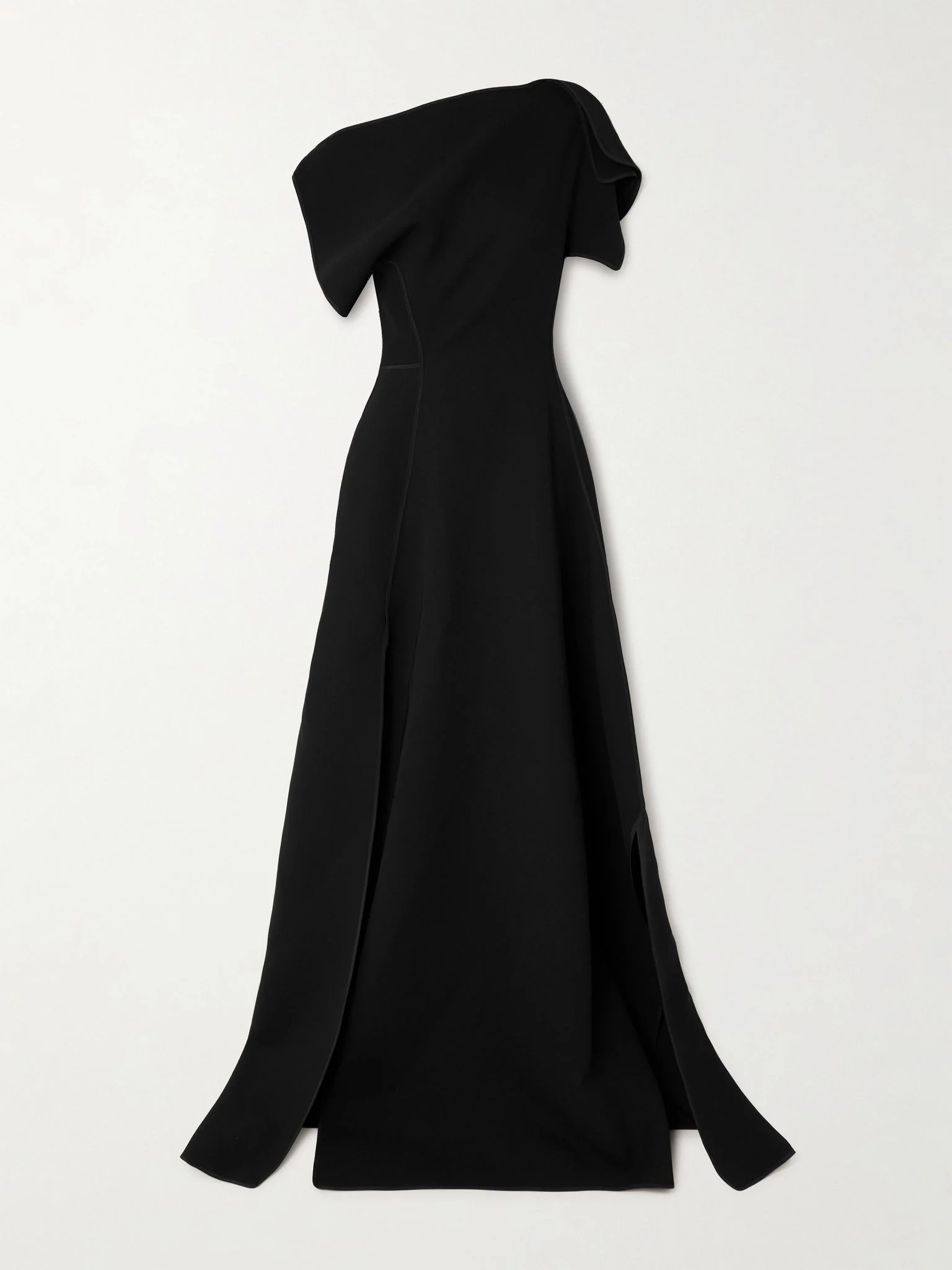 Maticevski's 'Synergy' gown is designed with such an elegant shape - the draped neckline sits off one shoulder and the full skirt pools at the floor. It's made from crepe that nips in gently at the waist and has subtle asymmetric seams leading to a dramatic split. Wear yours with a small clutch and point-toe pumps. Size & Fit - Fits true to size, take your normal size - Designed to be fitted at the bust and waist, loose at the hip - Mid-weight, slightly stretchy fabric - Model is 180cm/ 5'11" and is wearing a UK 8 Model measurements: - Bust: 81cm/ 32" - Waist: 64cm/ 25" - Hip: 89cm/ 35" Details & Care - Black crepe - Zip fastening along side - 100% polyester