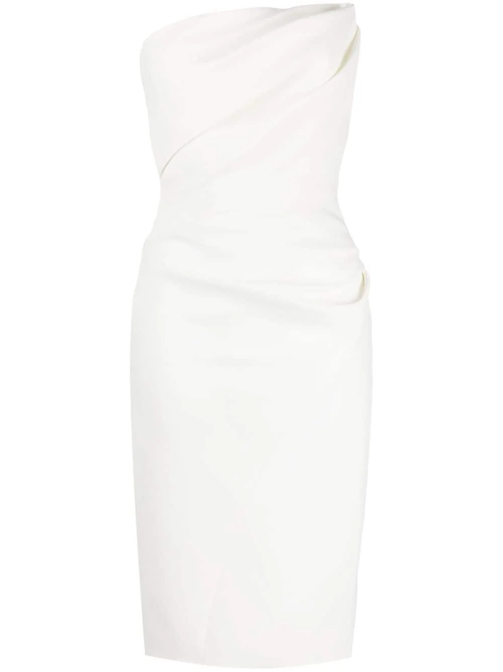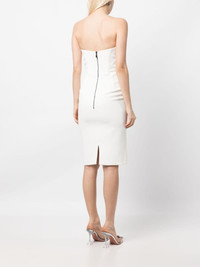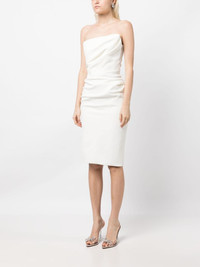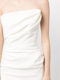 draped bodice dress Highlights - Ivory white - Stretch-silk - Draped design - Bandeau style - Rear zip fastening - Central rear vent - Mid-length Imported Composition Body: Polyester 100% Lining: Silk 93%, Elastane 7% SIZE & FIT Model measurements Height 5 ft 9 in(1.76 m) Bust/Chest 31.1 in(79 cm) Hips 35.03 in(89 cm) Waist 24.4 in(62 cm) FittingInformation Designed for a close fit throughout Made from a midweight non-stretch fabric This piece fits true to size – those with curvy hips may wish to take one size up Washing instructions Dry Clean Only