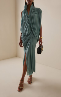 The Australian couturier crafts eveningwear that’s equal parts seductive and sophisticated. Trademarks include bustiers, directional draping, and sharp architectural folds. The overall effect puts an ultra-refreshing, relaxed spin on his avant-garde signatures. PRODUCT DETAILS - Pre-Fall '25 - Zip fastening - Composition: 100% rayon; Yoke: 93% silk, 7% elastane - Designer color: Teal - Dry clean - Made in Australia SIZE & FIT - Our model is wearing a size AU 6 - Model is 5'10" with a 30" bust, 24" waist, and 34" hip - Designed for a slim fit