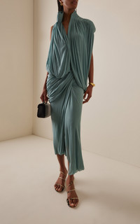 The Australian couturier crafts eveningwear that’s equal parts seductive and sophisticated. Trademarks include bustiers, directional draping, and sharp architectural folds. The overall effect puts an ultra-refreshing, relaxed spin on his avant-garde signatures. PRODUCT DETAILS - Pre-Fall '25 - Slip on - Composition: 100% rayon chiffon - Designer color: Teal - Dry clean - Made in Australia SIZE & FIT - Our model is wearing a size AU 6 - Model is 5'10" with a 30" bust, 24" waist, and 34" hip - Designed for a slim fit