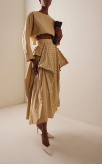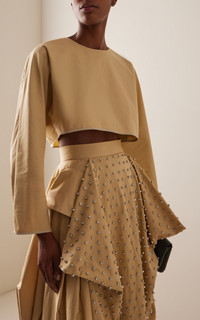The Australian couturier crafts eveningwear that’s equal parts seductive and sophisticated. Trademarks include bustiers, directional draping, and sharp architectural folds. The overall effect puts an ultra-refreshing, relaxed spin on his avant-garde signatures. The 'Shoreline' long-sleeve top has a boxy fit made from cotton that's cropped just below the bust. Pair it with the matching skirt. PRODUCT DETAILS - Fall '25 - Zip fastening along back - Composition: 100% cotton - Designer color: Honeycomb - Dry clean - Made in Australia