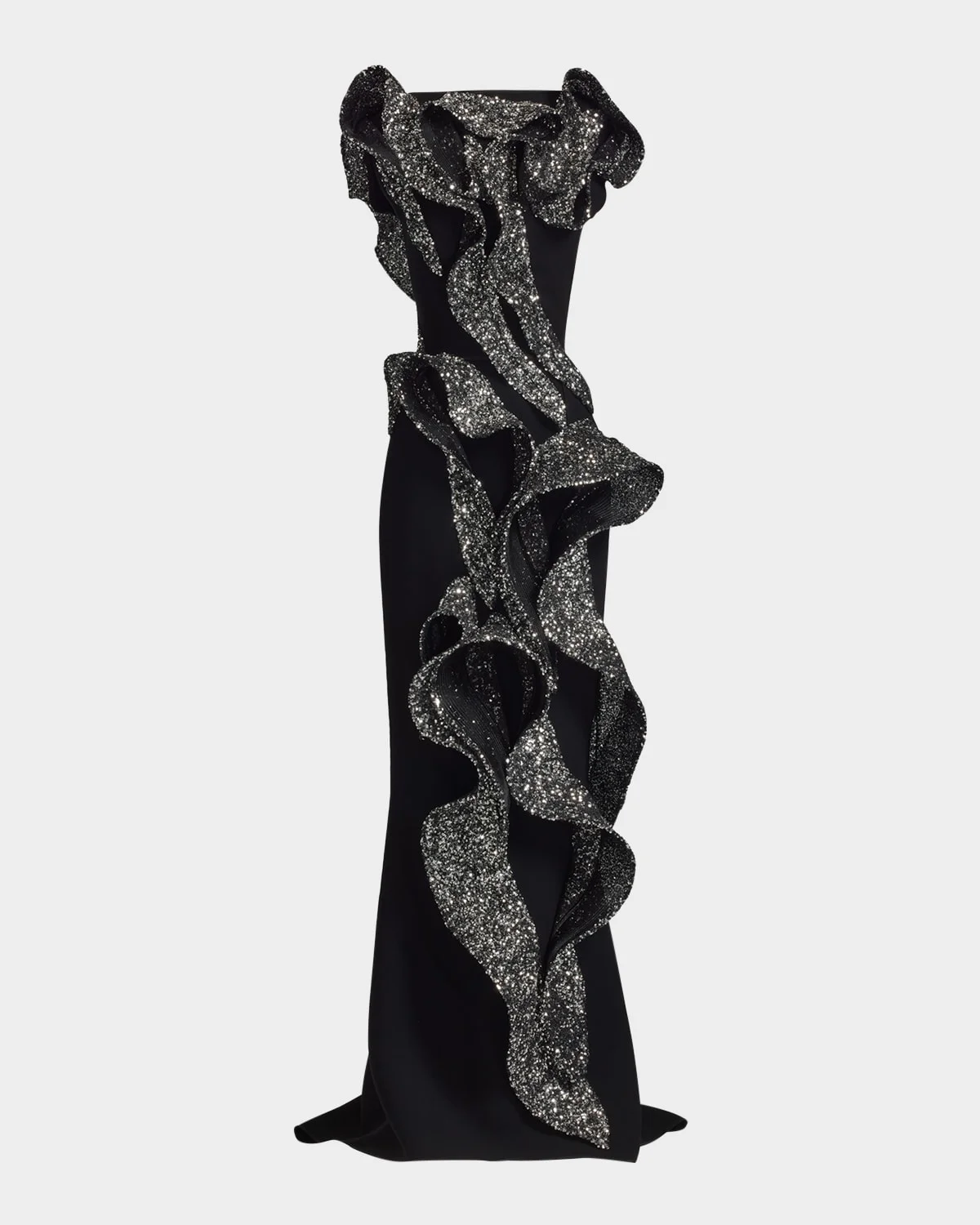 Tantalise Wave Sequined-Ruffle Mermaid Gown