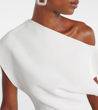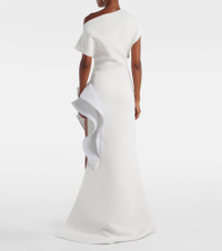 Expect the unexpected with Maticevski, a designer that incorporates artistry and sculptural influence into every piece. Primed to keep all eyes on you, the Wishing gown features an asymmetric neckline, a side slit, and a ruffle enriched with dazzling embellishments. Product Details - Material: 100% polyester - Care instructions: dry clean - Made in Australia - Designer color name: White - Item color: white - Trim: 95% polyester, 5% elastane - Closure: zipped side - Long vent - Hem: uneven - Item number: P01059370 Size & Fit - True to size - Sizing adapted to taller women - Cinched waist - Non-stretchy fabric - The model seen in the picture is 178cm-5'10" and wearing a size UK 8