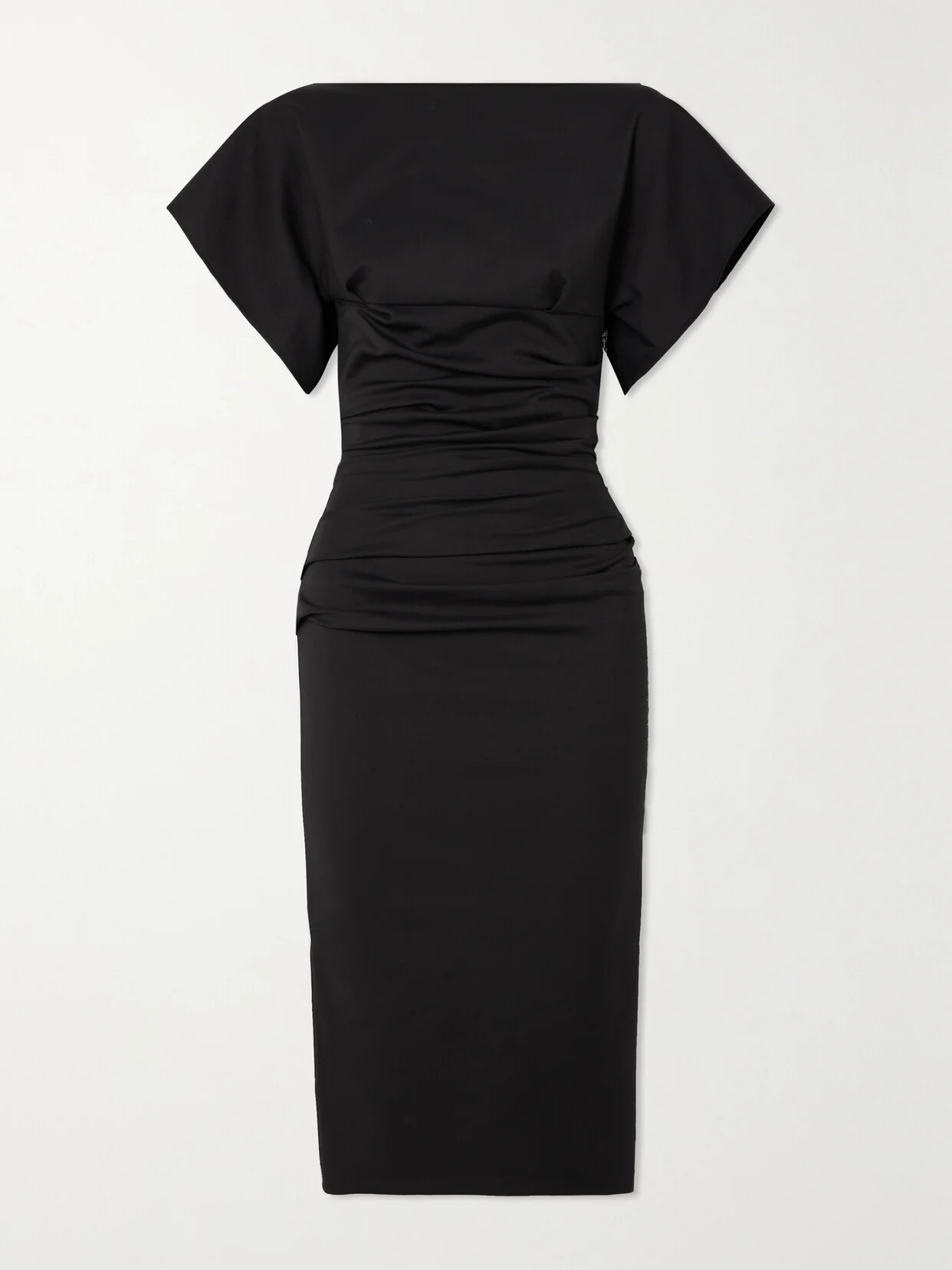 This midi dress is so elegantly shaped, it could only be the work of Maticevski. It's made from soft stretch-jersey and has a form-fitting, gathered waist that artfully contrasts the exaggerated shoulders. Style yours with shimmering accessories - they'll pop against the black.