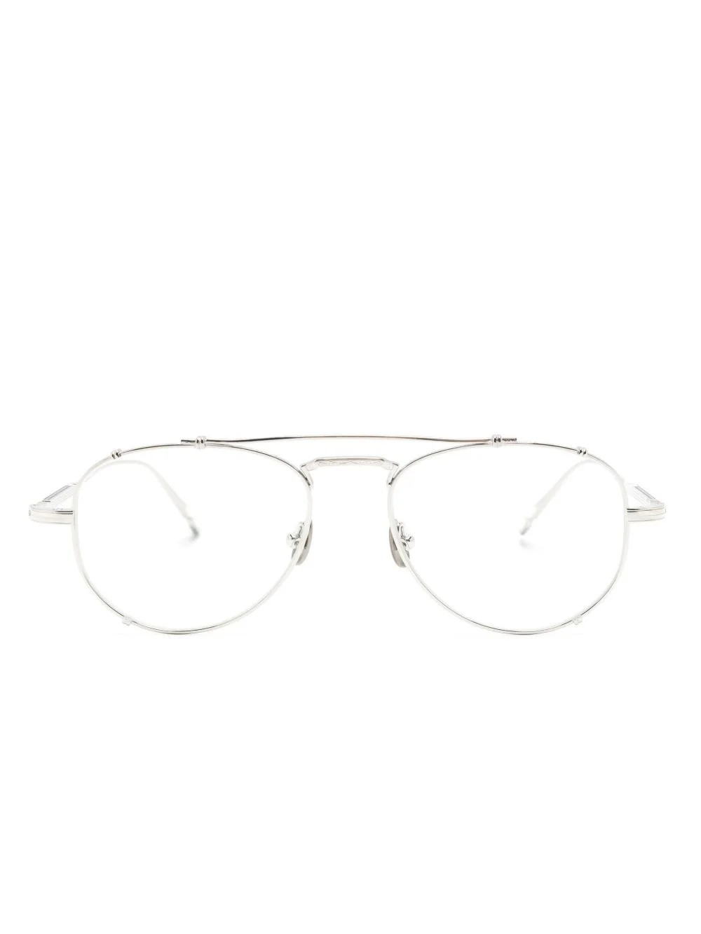 M3142 geometric-frame glasses silver-tone metal geometric frame double bridge clear lenses nose pads embossed detail at the arms straight arms curved tips with engraved logo All glasses from FARFETCH are sold as non-prescription frames. These glasses come with a protective case. Imported Composition Metal 100% SIZE & FIT Measurement Arm Length 5.7 in(14.5 cm) Bridge Width 0.66 in(1.7 cm) Lens Diameter 2.04 in(5.2 cm) Total Width 5.7 in(14.5 cm)