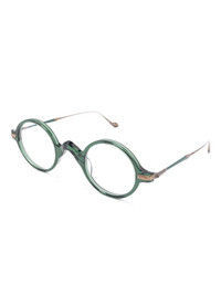 round-frame glasses Highlights - Green - Round frame - Nose pads - Straight temples - Temple detailing - All glasses from farfetch are sold as non-prescription frames. - These glasses come with a protective case. Imported Composition Acetate 100%, Titanium 100% SIZE & FIT Measurement Arm Length 5.7 in(14.5 cm) Bridge Width 1.1 in(2.8 cm) Lens Diameter 1.53 in(3.9 cm)