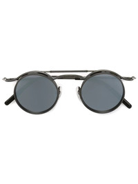 round-framed sunglasses Highlights - Black - Acetate and titanium - Black - Round frame - Blue tinted lenses - Nose pads - These glasses come with a protective case. Imported Composition Titanium 70%, Acetate 30% SIZE & FIT Measurement Bridge Width 0.9 in(2.3 cm) Lens Diameter 1.69 in(4.3 cm) Total Width 5.11 in(13 cm) Arm Length 5.51 in(14 cm)
