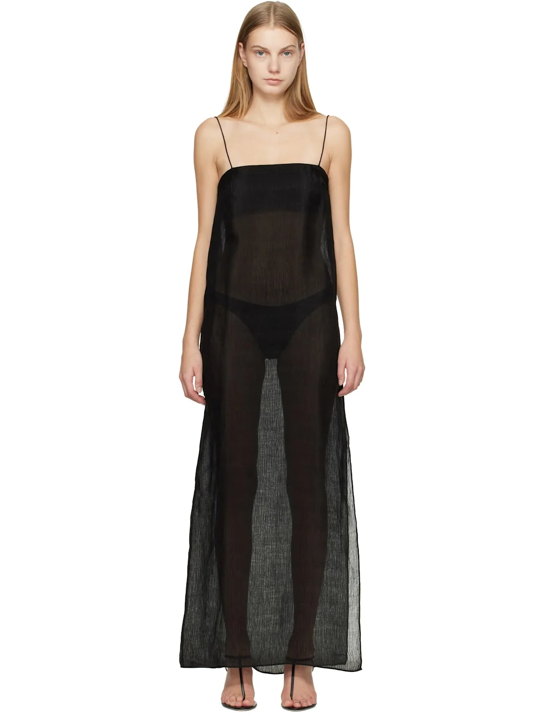 Sheer silk- and linen-blend organza maxi dress. · Lightweight · Straight neck · Darts at chest · Slit at side seam · Fixed spaghetti straps · Unlined Supplier color: Black 71% silk, 29% linen. Made in Australia 261946F055000