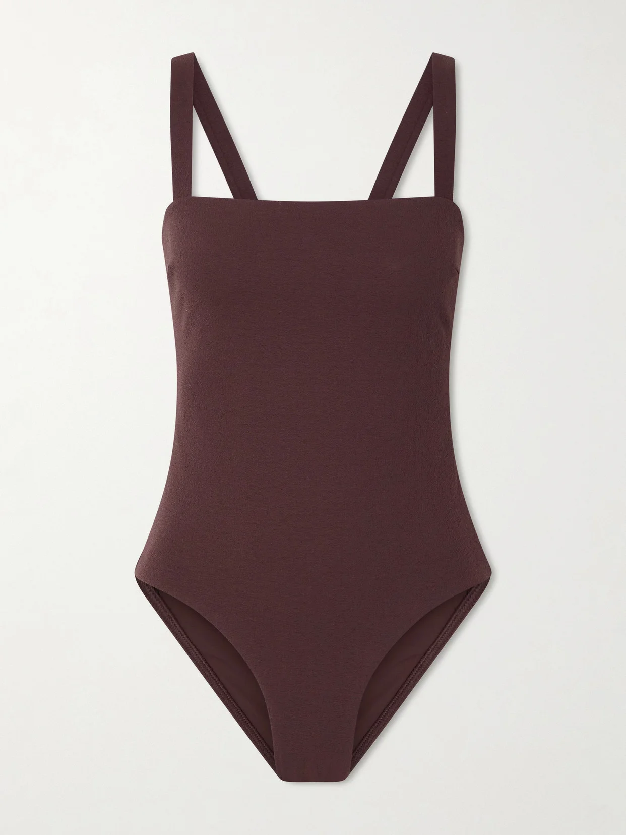 Simplicity is at the heart of Matteau's collections - the label's moodboard is filled with minimalist interiors and models at the beach in the '90s. This recycled swimsuit has supportive straps and a square neckline. Wear yours on vacation with an oversized shirt and layers of gold jewelry. Lower-Impact Materials. This product is made using at least 50% lower-impact materials or ingredients. Find out more about our NET SUSTAIN criteria here.