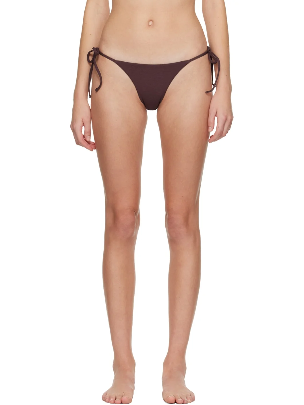 Textured stretch nylon jersey bikini bottom. · Low-rise · Self-tie fastening at sides · Fully lined Supplier color: Aubergine crinkle 80% nylon, 20% elastane. Made in Portugal 261946F105003
