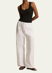 Matteau pants crafted from an organic cotton poplin fabrication in a washer finish High-rise drawstring waistband Side seam pockets Single back patch pocket Full length Relaxed fit Straight legs Pull-on style Organic cotton Made in Australia Model is 5'10"/177cm. Online Inquiries: BGS21_T5C74| Store Inquiries: #4679929