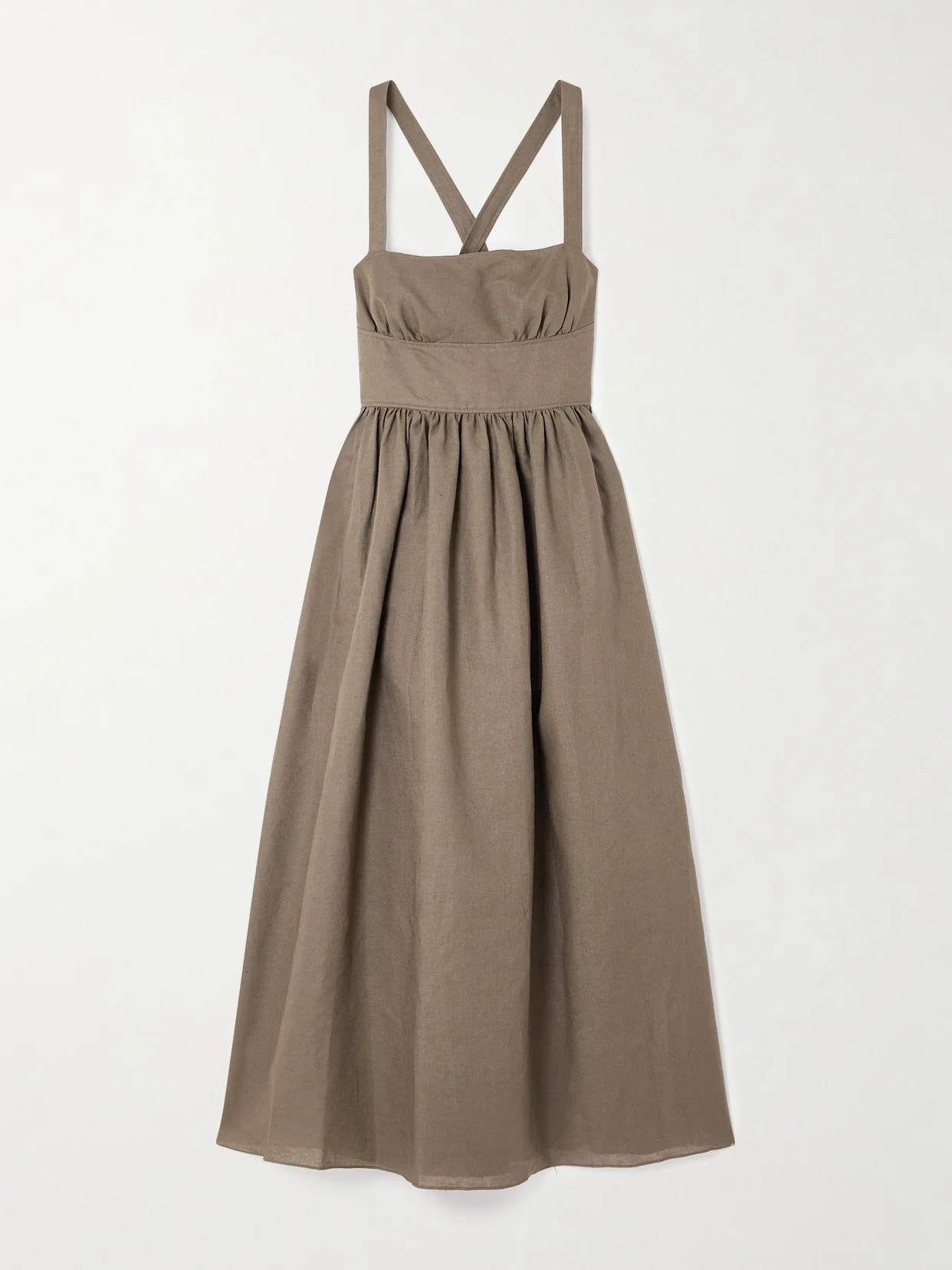 Matteau's midi dress is a testament to the art of effortless style. Made from airy linen and cotton-blend, it has a smooth, curved panel below the bust and a gathered skirt that offers plenty of movement and volume. Ground yours with understated flats or sandals.
