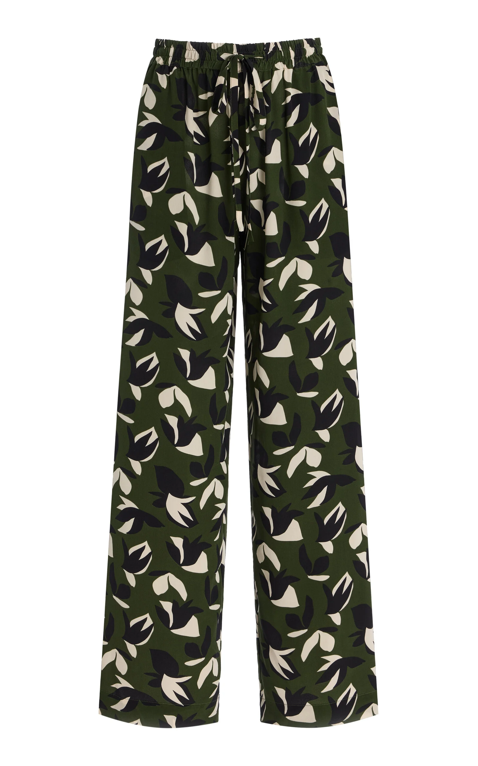This season, the Australian sister duo delivers their signature vacation-ready minimalism, with a focus on comfort and ease. Matteau employs an airy silk-crepe with an abstract print to construct these pants, tailoring them with a straight leg and drawstring waist. Use as a beach coverup or style with a cropped top for beachside drinks. PRODUCT DETAILS - Pre-Fall ‘25 - Drawstring fastening - Composition: 100% silk - Dry clean - Designer Color: Agave - Imported SIZE & FIT - Our model is wearing a size 1 - Model is 5'10" with a 31" bust, 23.5" waist, and 33.5" hip