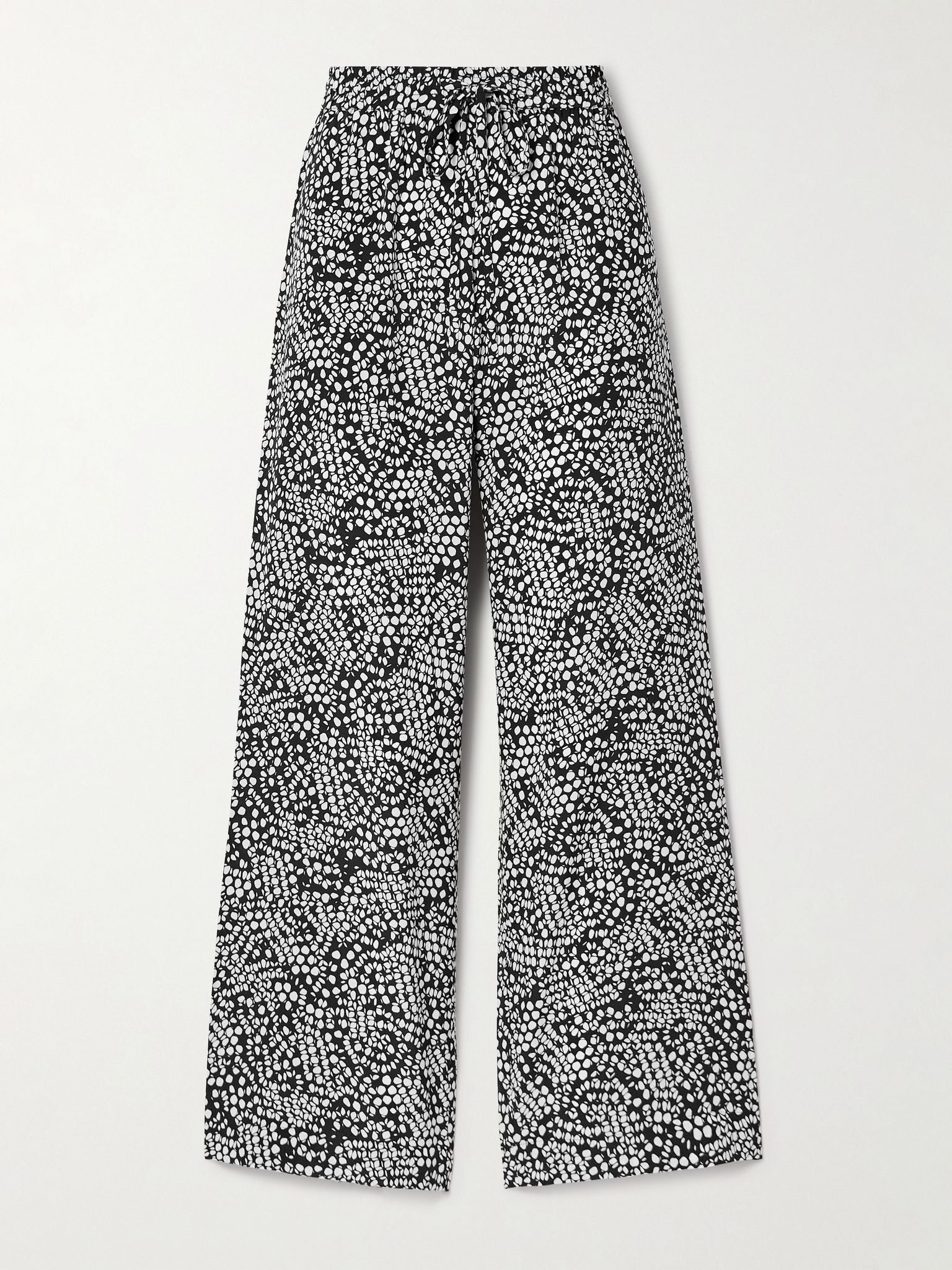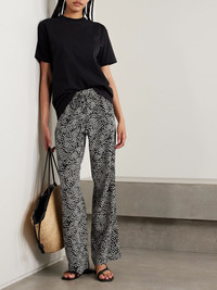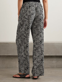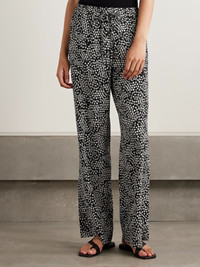 Matteau's track pants are just as comfortable as they are easy to style. Made from polka-dot silk crepe de chine, they have a drawstring, elasticated waist and straight legs. Wear them with a simple tank and pumps. Size & Fit - 1 = UK 6/ US 2/ FR 34 - 2 = UK 8/ US 4/ FR 36 - 3 = UK 10/ US 6/ FR 38 - 4 = UK 12/ US 8/ FR 40 - 5 = UK 14/ US 10/ FR 42 - 6 = UK 16/ US 12/ FR 44 - 7 = UK 18/ US 14/ FR 46 - Fits true to size, take your normal size - High-rise, cut for a straight leg fit - Elasticated at the waist for a comfortable fit - Lightweight, non-stretchy fabric - Model is 175cm/ 5'9" and is wearing the designer's size 2 Model measurements: - Bust: 74cm/ 29" - Waist: 61cm/ 24" - Hip: 89cm/ 35" Details & Care - Black and white silk crepe de chine - Pull on - 100% silk - Dry clean