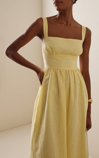 Exclusive Crossback Linen-Cotton Maxi Dress yellow