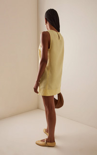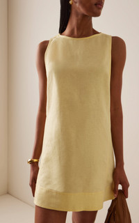 The Australian sister duo delivers their signature vacation-ready minimalism, with a focus on comfort and ease. Introducing the Linen Mini Shift Dress, a new silhouette that is part of the exclusive collaboration between Moda Operandi and Matteau. Featuring a crew neckline, side panel detail and key-hole opening at the back neckline. Style with simple sandals with an easy weekend look. PRODUCT DETAILS - Pre-Fall '25 - Zip fastening - Composition: 55% linen, 45% cotton; Lining: 100% cotton - Designer color: Lemon - Dry clean - Made in Australia SIZE & FIT - Designed for a slim fit