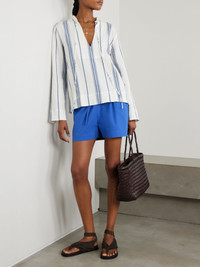 The nautical trend always feels right on cue for summer, and Matteau's shirt is a take on traditional fisherman styles. With a tie-fastening neckline, it's made from textured cotton-blend with fresh stripes all over. Size & Fit - Fits true to size, take your normal size - Cut for a relaxed fit - Mid-weight, non-stretchy fabric - Model is 180cm/ 5'11" and is wearing the designer's size 2 Model measurements: - Bust: 80cm/ 31.5" - Waist: 65cm/ 25.5" - Hip: 89cm/ 35" Details & Care - White and blue cotton-blend gauze - Ties at front - 99% cotton, 1% elastane; trim: 100% Cotton - Hand wash or dry clean - Designer color: Porto Stripe