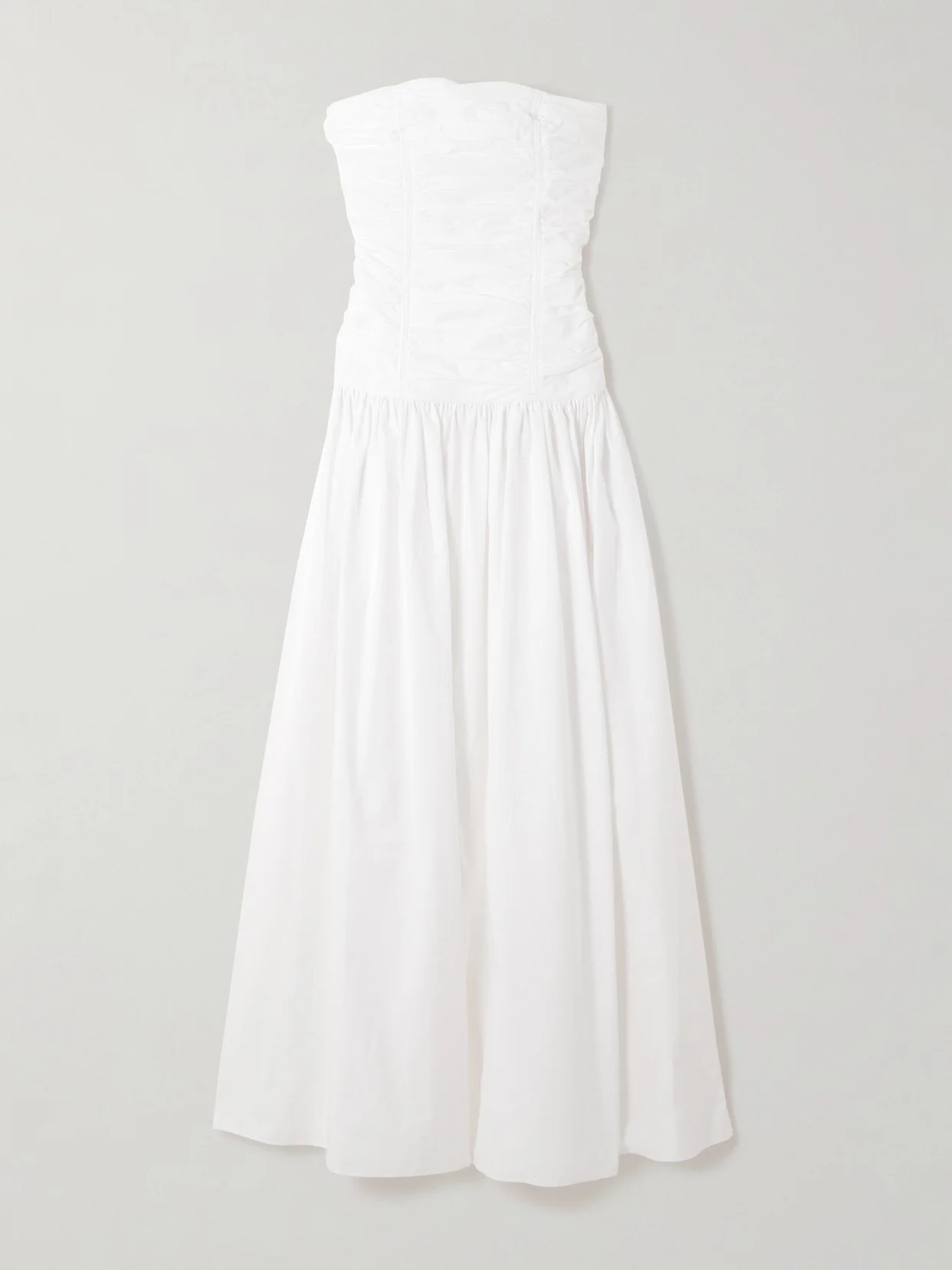 EXCLUSIVE AT NET-A-PORTER. Matteau is committed to creating clothes that not only outlast trends, but also remain in quality condition throughout plenty of wears. This strapless dress is made from organic cotton-poplin that's ruched through the bodice and falls to a floaty, gathered skirt. Wear yours with flats and statement jewelry.
