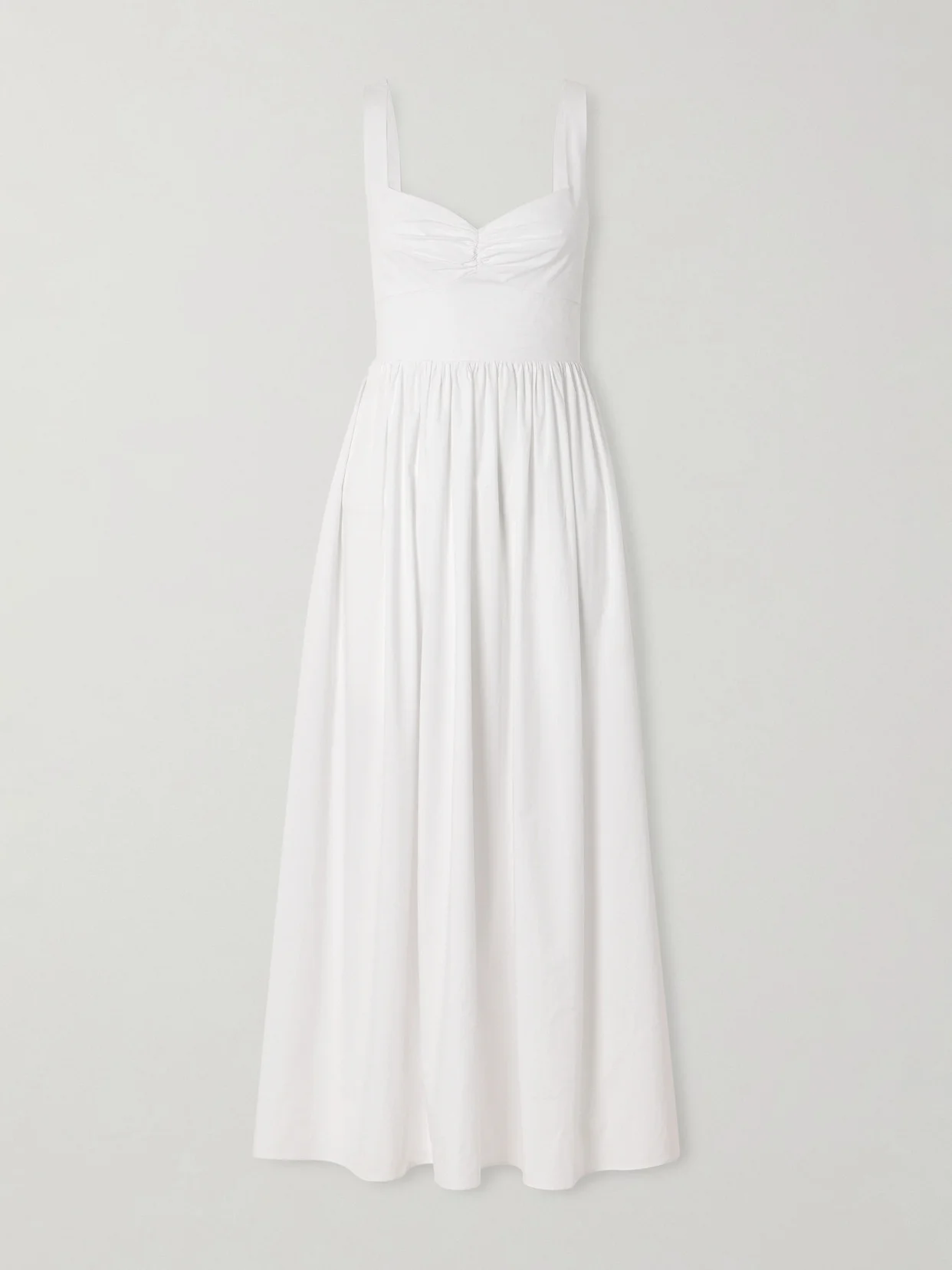 Matteau's midi dress is perfect for days and events when you want to look effortlessly pulled together. Made from certified organic cotton-poplin, it has a sweetheart neckline and is gathered along the waist for soft volume. The shirred panel at the back ensures a comfortable fit. Lower-Impact Materials. This product is made using at least 50% lower-impact materials or ingredients. Find out more about our NET SUSTAIN criteria here.