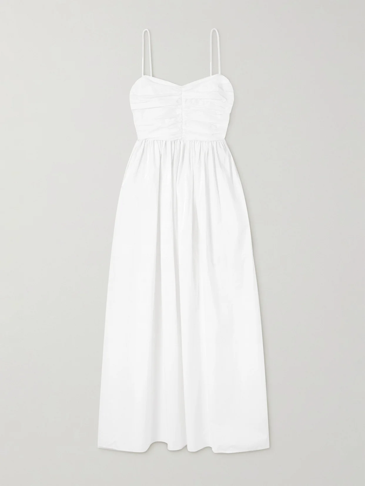 Matteau co-founders Peta Heinsen and Ilona Hamer cite their mother as a main source of inspiration - both have fond, shared memories of watching her sew clothes for them as children. This midi dress is made from crisp organic cotton-poplin and gently gathered along the bodice and waist. Lower-Impact Materials. This product is made using at least 50% lower-impact materials or ingredients. Find out more about our NET SUSTAIN criteria here.