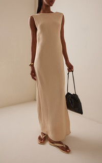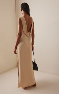 Open-Back Crepe Maxi Dress neutral