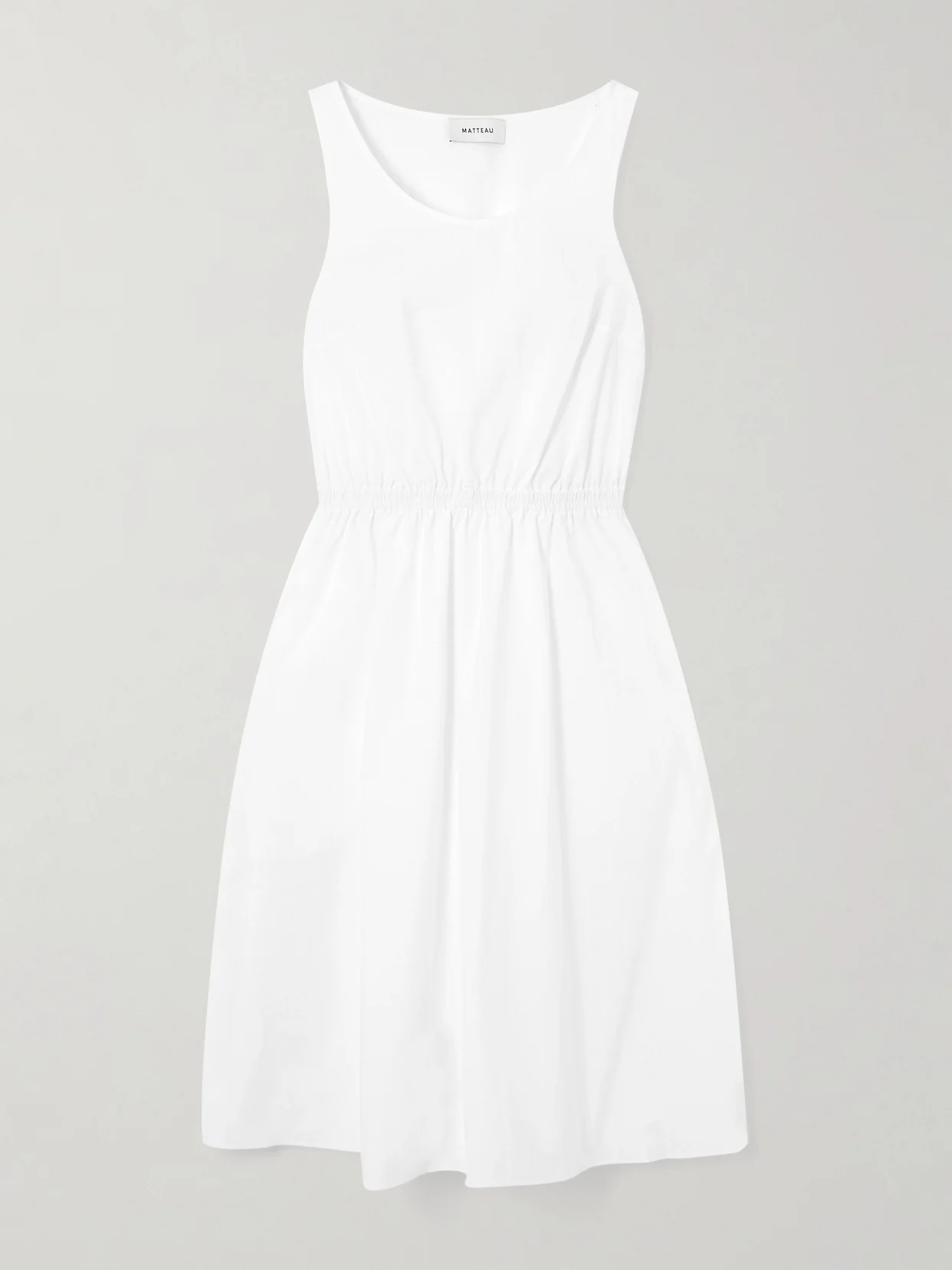 Breezy, effortless and comfortable, Matteau's dress is perfect for summer. It's made from lightweight organic cotton-poplin and has an elasticated waistband and side pockets. Wear yours with sneakers or sandals. Lower-Impact Materials. This product is made using at least 50% lower-impact materials or ingredients. Find out more about our NET SUSTAIN criteria here.