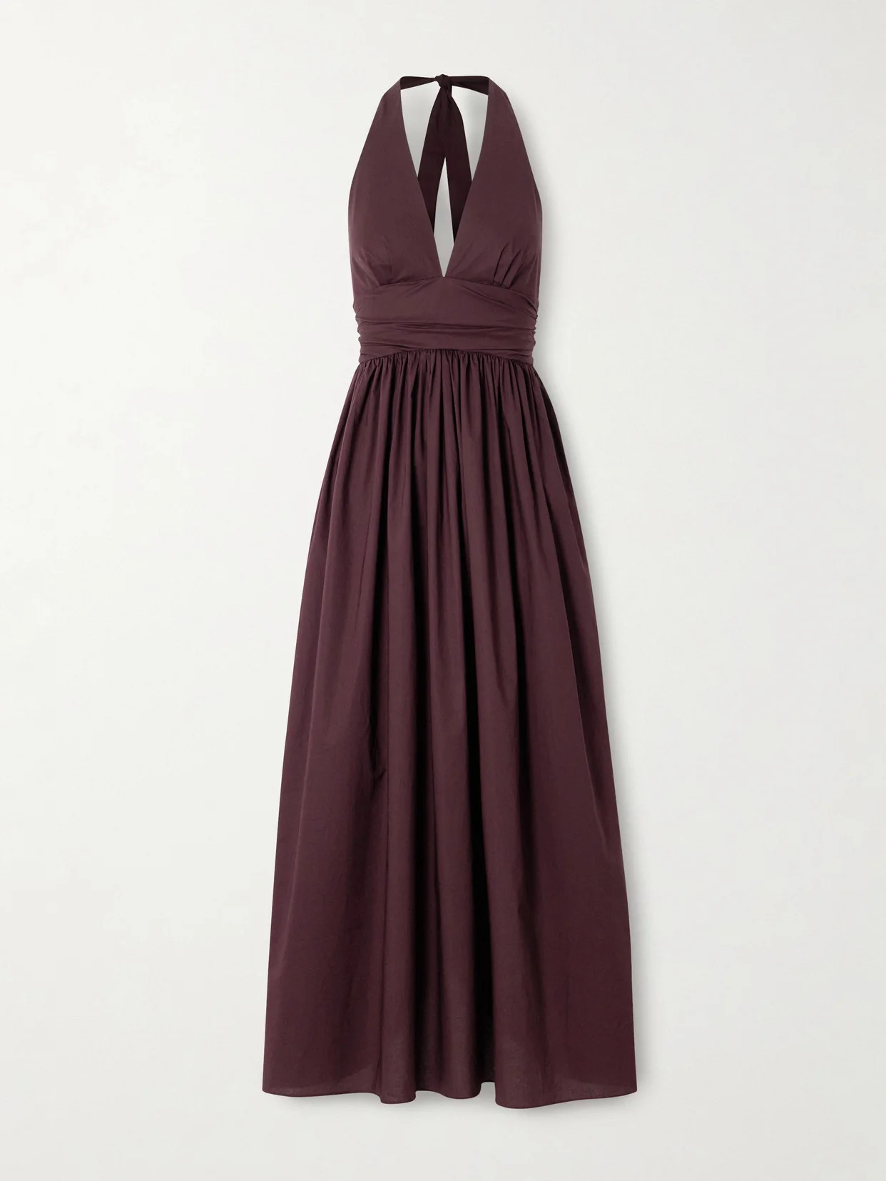 Gathered Organic Cotton-poplin Halterneck Maxi Dress