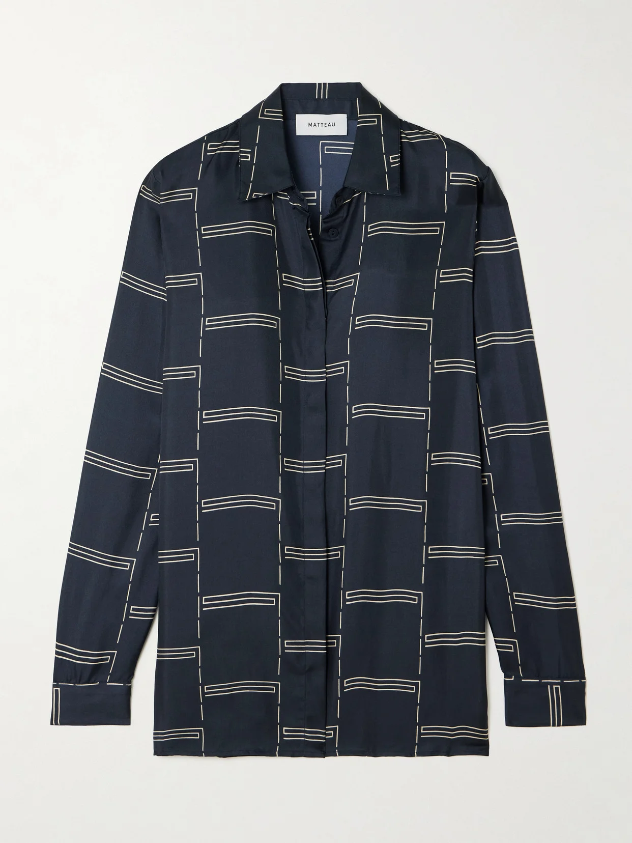Matteau's shirt is tailored from slinky silk-twill and printed with an abstract bamboo design. Designed for a floaty fit, it's inspired by menswear and has side slits to enhance the laid-back feel.