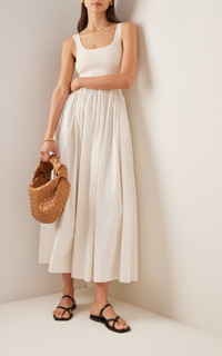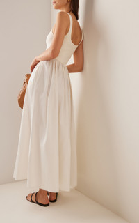 This season, the Australian sister duo delivers their signature vacation-ready minimalism, with a focus on comfort and ease. This maxi has an easy silhouette with a figure-flattering scoop-neck bodice made from a soft, stretchy ribbed-knit and cotton A-line skirt. Wear it from beach to bar over the label's signature swimwear. PRODUCT DETAILS - Slip on - Composition: 66% viscose, 17% nylon, 17% elastane; Skirt: 100% cotton - Dry clean - Made in Australia SIZE & FIT - Our model is 180cm / 5'11" and is wearing a size 1 - This style fits true to size - We suggest taking your normal size