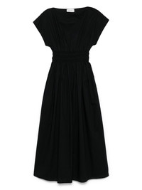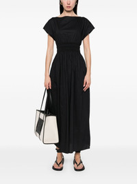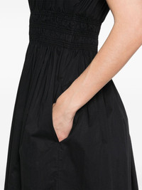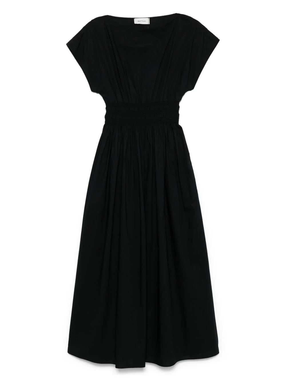 shirred-waist midi dress Highlights - Black - Two side inset pockets - Boat neck - Gathered detailing Imported Composition Organic Cotton 100% SIZE & FIT Model measurements Height 5 ft 10 in(1.78 m) Bust/Chest 33.46 in(85 cm) Hips 36.22 in(92 cm) Waist 23.22 in(59 cm) FittingInformation Designed for a close fit at the chest and waist with a loose fit at the hip The elasticated waist allows for a comfortable fit Made from a midweight non-stretch fabric