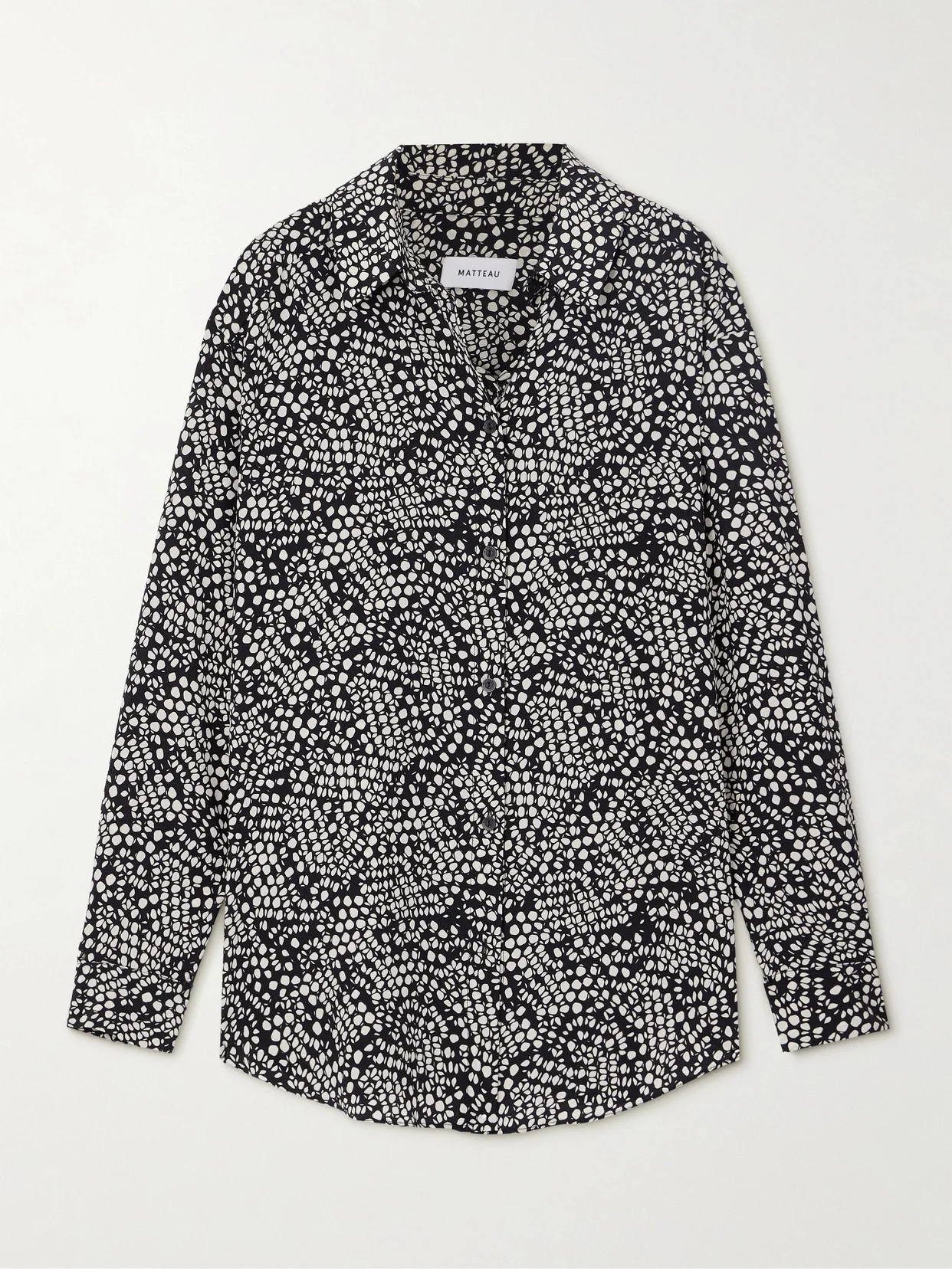 Effortless yet sophisticated, Matteau's shirt will form the foundation of many work and weekend outfits. It's made from lightweight silk crepe de chine with a contrasting abstract pattern. Tuck it into everything from jeans to the coordinating track pants.