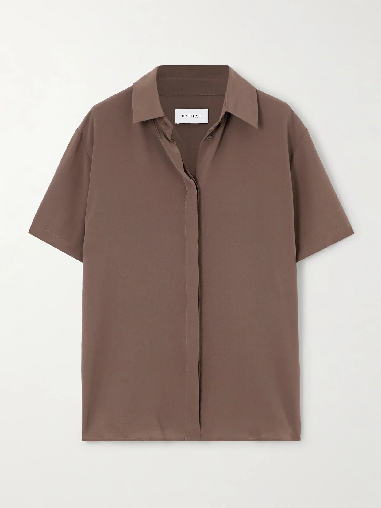 Sophisticated yet laid-back, Matteau's designs will form the foundation of countless looks. This shirt is made from lightweight silk crepe de chine for a relaxed shape with a stepped hem. Wear yours with the coordinating pants in the same 'Truffle' shade.