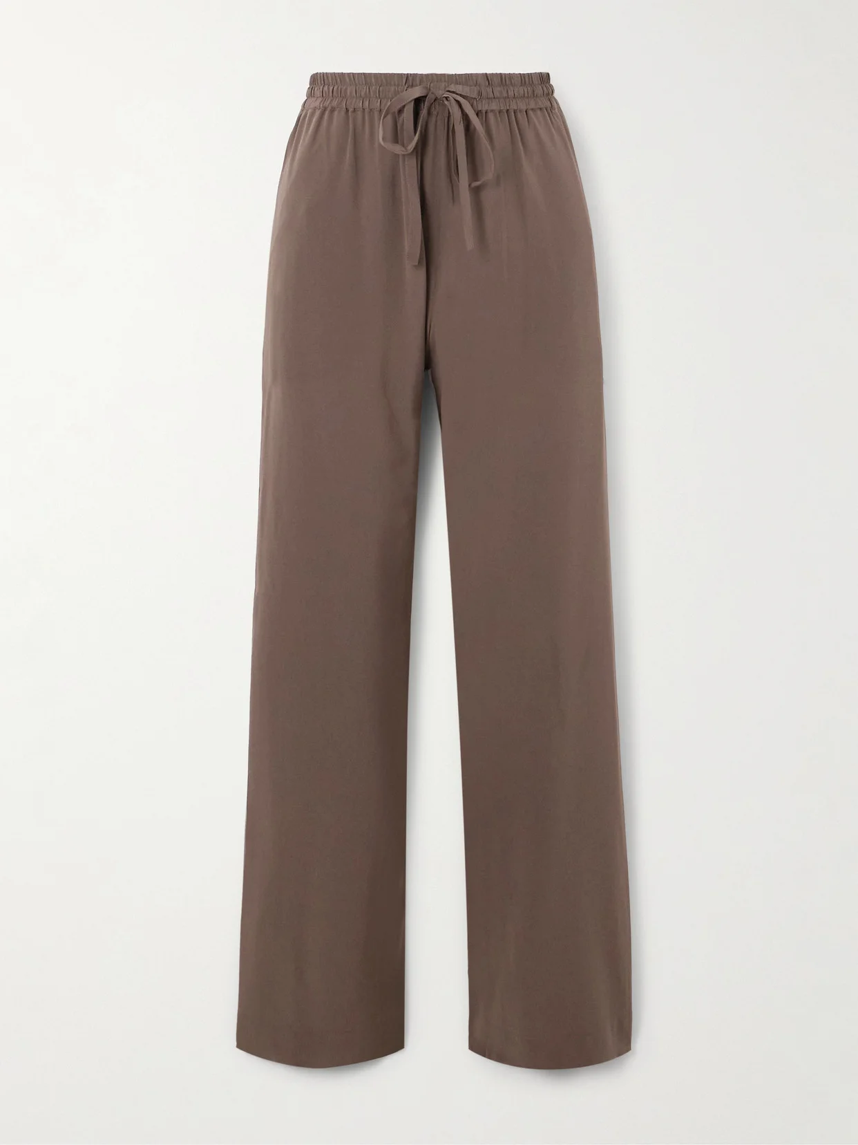 Matteau's refined track pants are comfortable and easy to style. Made from fluid silk crepe de chine, they have a drawstring, elasticated waist and straight legs. Wear them with the coordinating shirt or a simple tank.