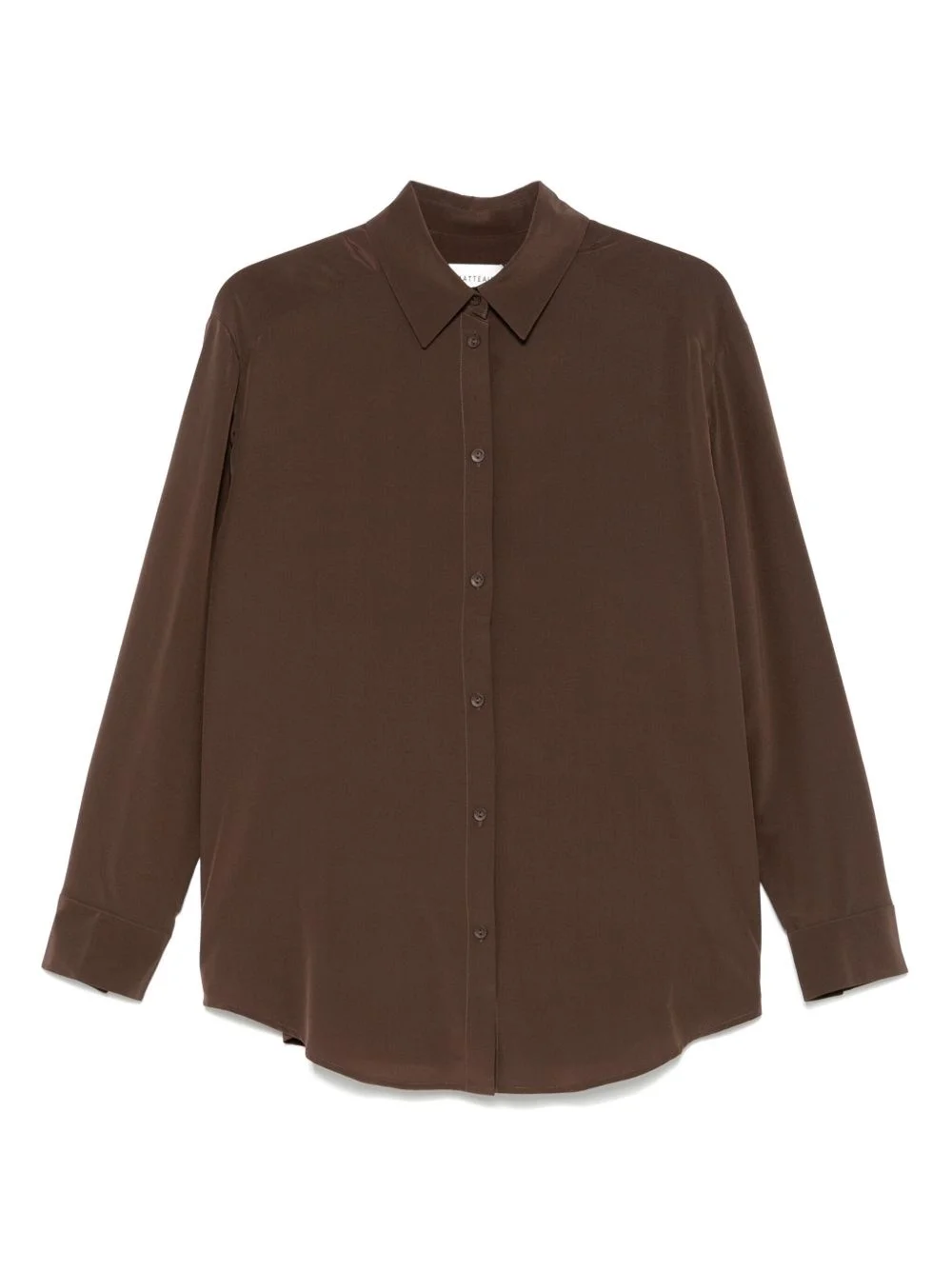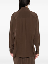 silk shirt Highlights - Chocolate brown - Front button placket - Buttoned cuffs - Box-pleat design - Long sleeves Imported Composition Silk 100% SIZE & FIT Model measurements Height 5 ft 10 in(1.78 m) Bust/Chest 33.46 in(85 cm) Hips 36.22 in(92 cm) Waist 23.22 in(59 cm) FittingInformation Designed to be unstructured, offering a loose fit throughout Made from a lightweight non-stretch fabric