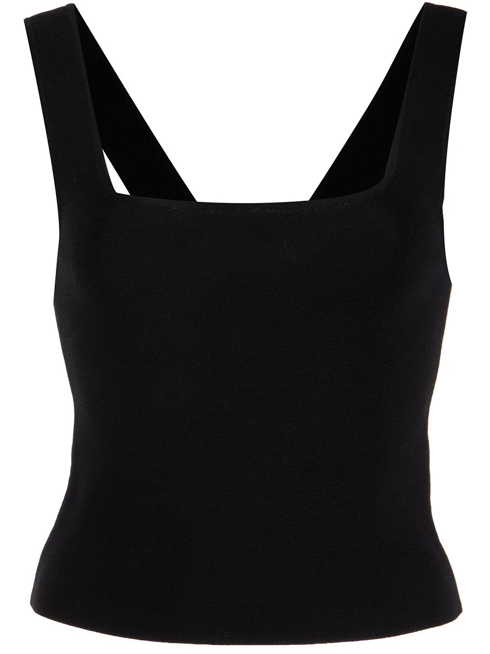 square neck vest top Highlights - Jet black - Square neck - Sleeveless - Square open back - Straight hem Imported Composition Viscose 100% SIZE & FIT Model measurements Height 5 ft 10 in(1.77 m) Bust/Chest 31.88 in(81 cm) Hips 34.64 in(88 cm) Waist 24.01 in(61 cm) FittingInformation This piece fits true to size. We recommend you get your regular size Cut for a close fit Made with a mid-weight fabric