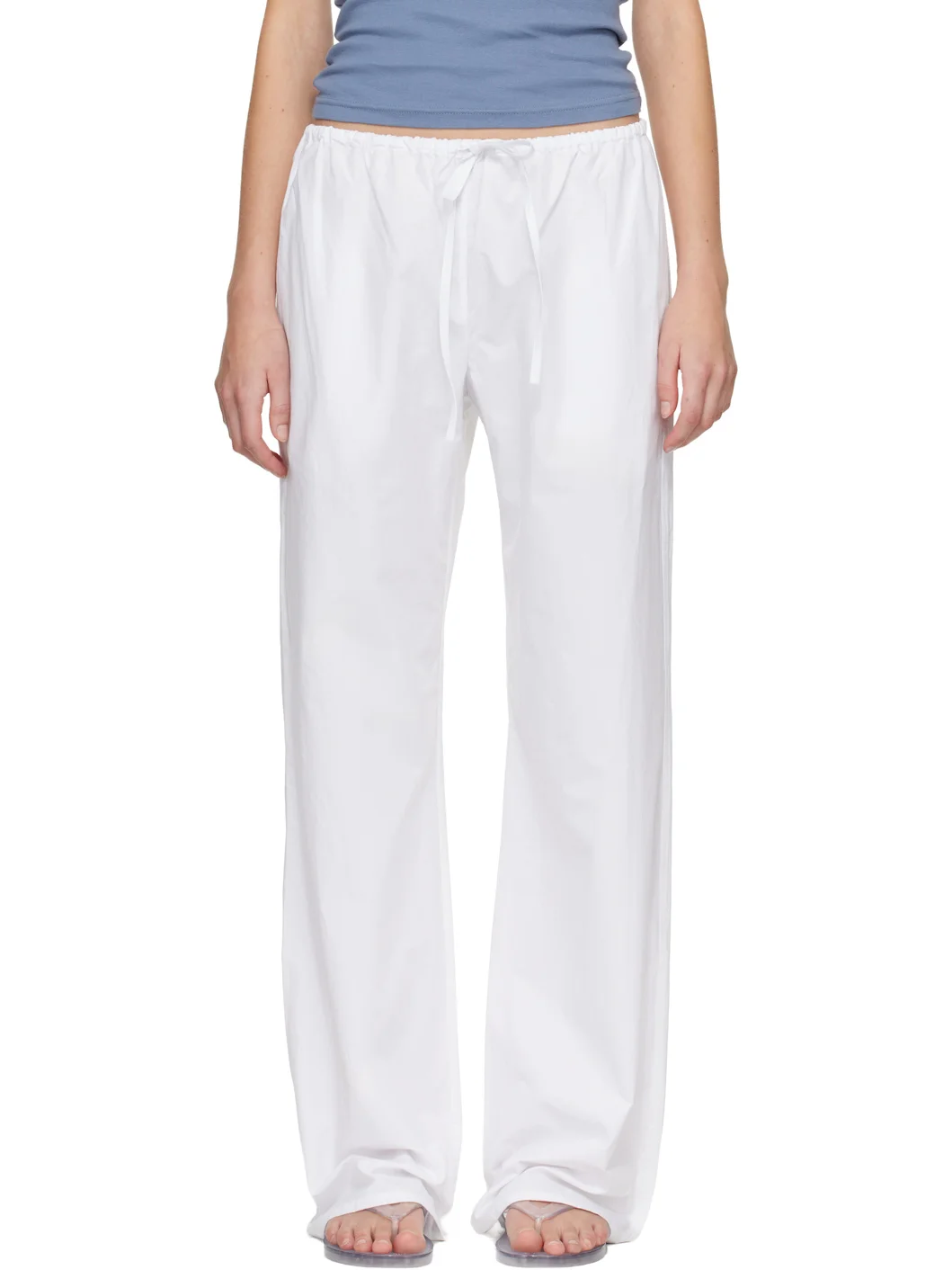 Organic cotton poplin trousers. · Loose-fit, straight-leg · Drawstring at elasticized waistband · Three-pocket styling Supplier color: White 100% organic cotton. Made in Australia 261946F087003