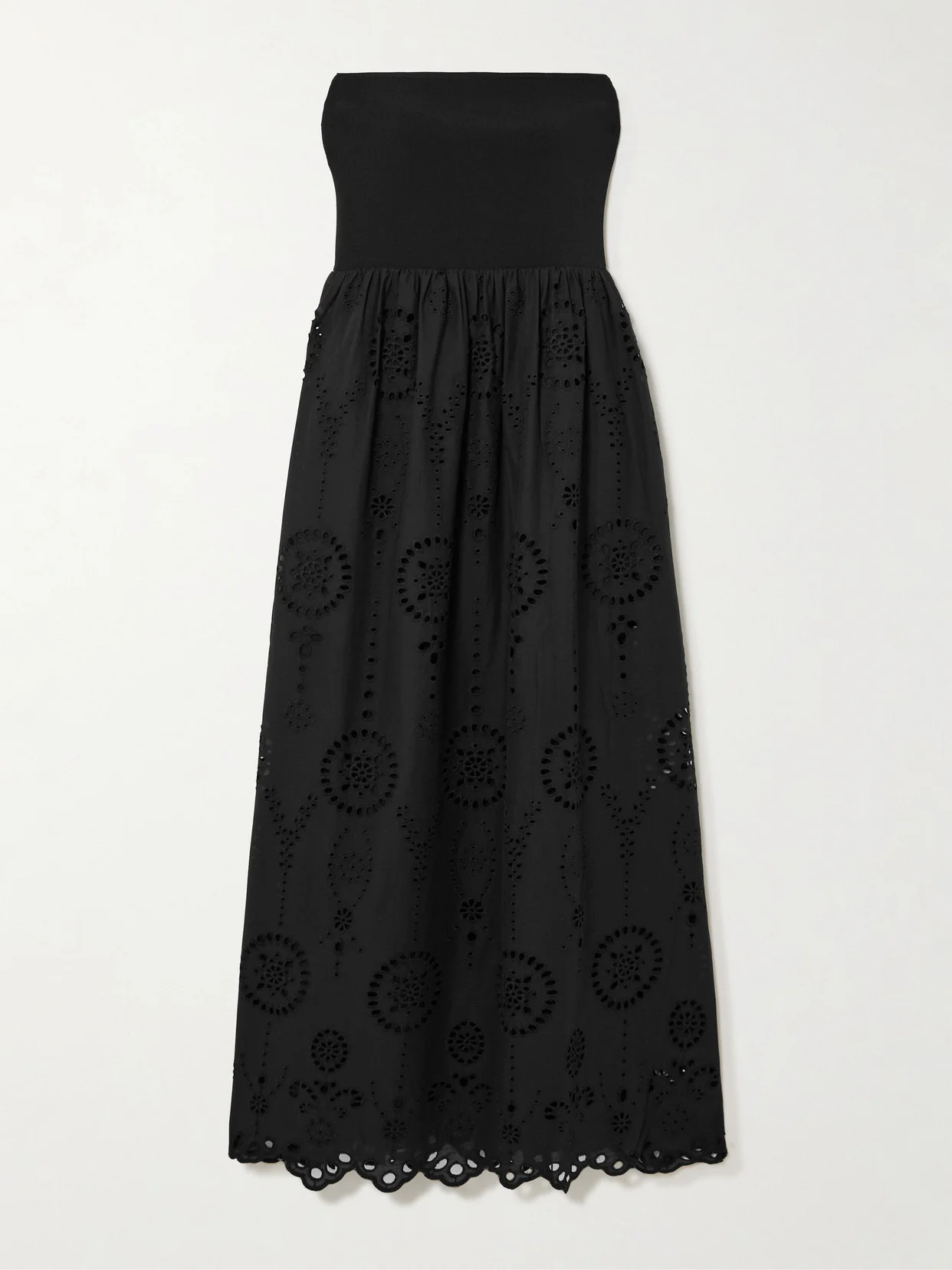 Strapless Broderie Anglaise Organic Cotton And Stretch-knit Midi Dress