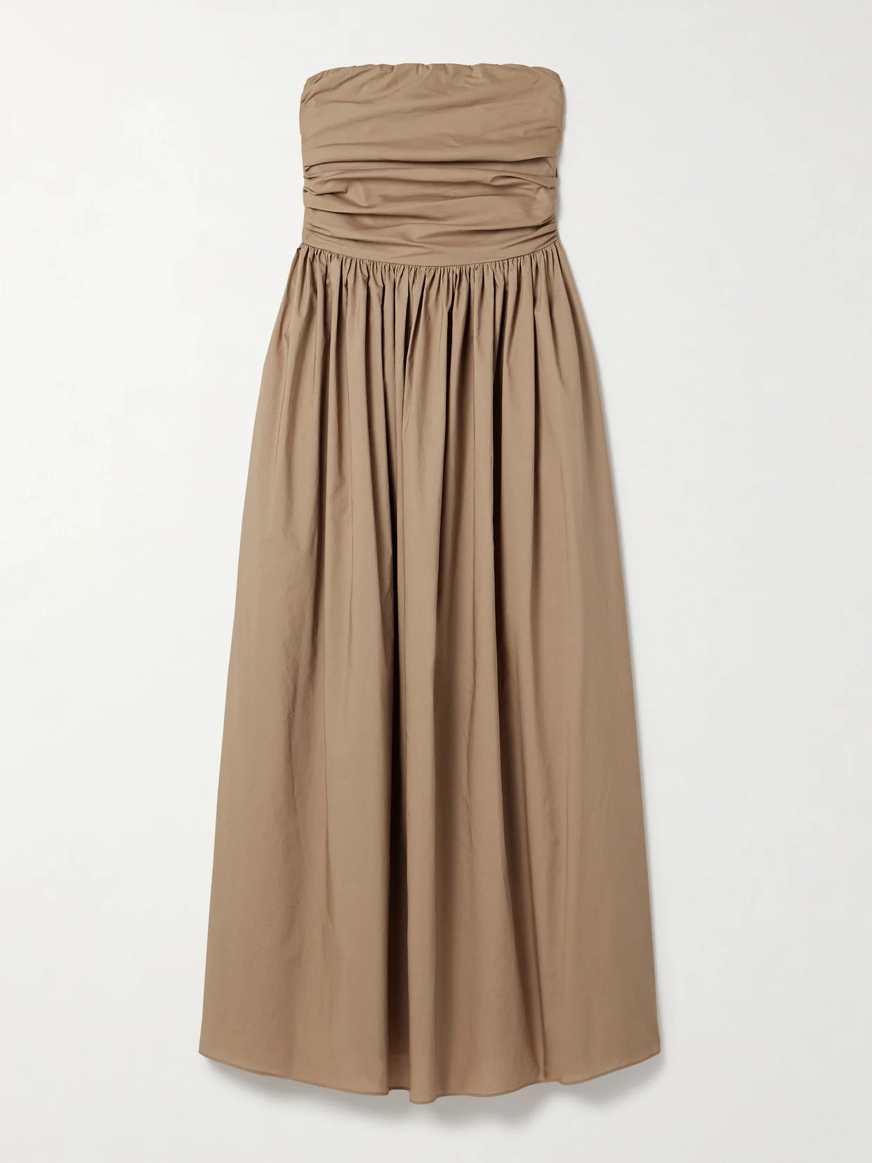 Strapless Gathered Organic Cotton-poplin Midi Dress