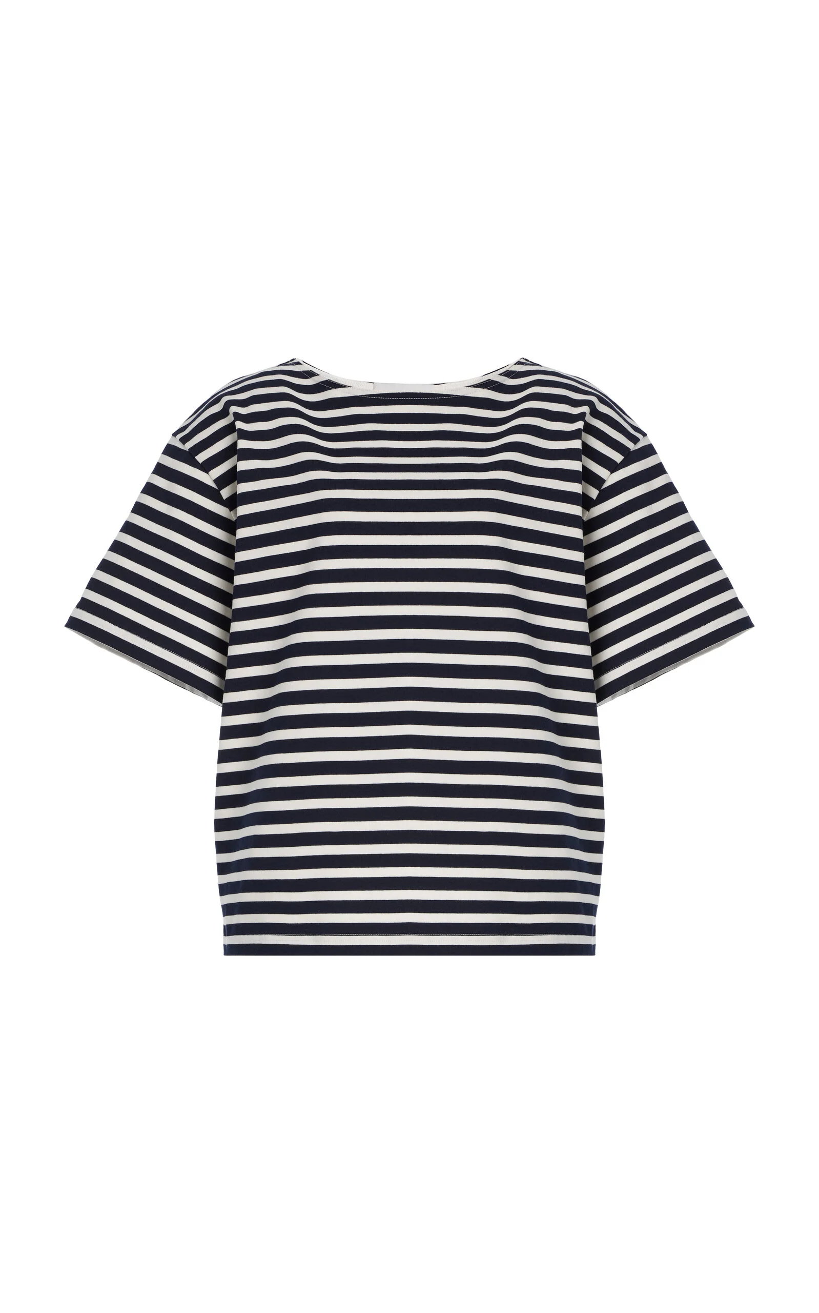 This season, the Australian sister duo delivers their signature vacation-ready minimalism, with a focus on comfort and ease. Crafted from organic cotton, this french-striped tee shirt exudes Parisian ease with its oversized, yet structured fit. PRODUCT DETAILS - Pre-Fall ‘25 - Slip on - Composition: 100% organic cotton - Dry clean - Made in Australia SIZE & FIT - Our model is wearing a size 1 - Model is 5'10" with a 31" bust, 23.5" waist, and 33.5" hip - Designed for a relaxed fit