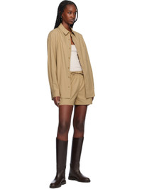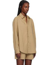 Organic cotton poplin shirt. · Spread collar · Button closure · Patch pocket at chest · Shirttail hem · Dropped shoulders · Pleats at single-button barrel cuffs · Box pleat at back yoke Supplier color: Stone 100% organic cotton. Made in Australia 251946F109005