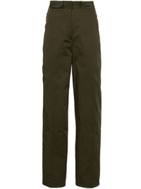 tapered-leg twill trousers Highlights - Olive green - Organic cotton - Twill weave - High-waisted - Belt loops - Concealed front button, hook and zip fastening - Tapered leg - Two side slit pockets - Two rear patch pockets Imported Composition Organic Cotton 97%, Elastane 3% SIZE & FIT Model measurements Height 5 ft 10 in(1.77 m) Bust/Chest 32.28 in(82 cm) Hips 35.03 in(89 cm) Waist 25.19 in(64 cm) FittingInformation Designed for a tapered fit, these trousers allow for a close fit at the waist and a loose unrestricted fit over the leg with a closer fit towards the ankle Made from a midweight stretch fabric, this piece offers elasticity and flexibility when worn This piece fits true to size – take your usual size