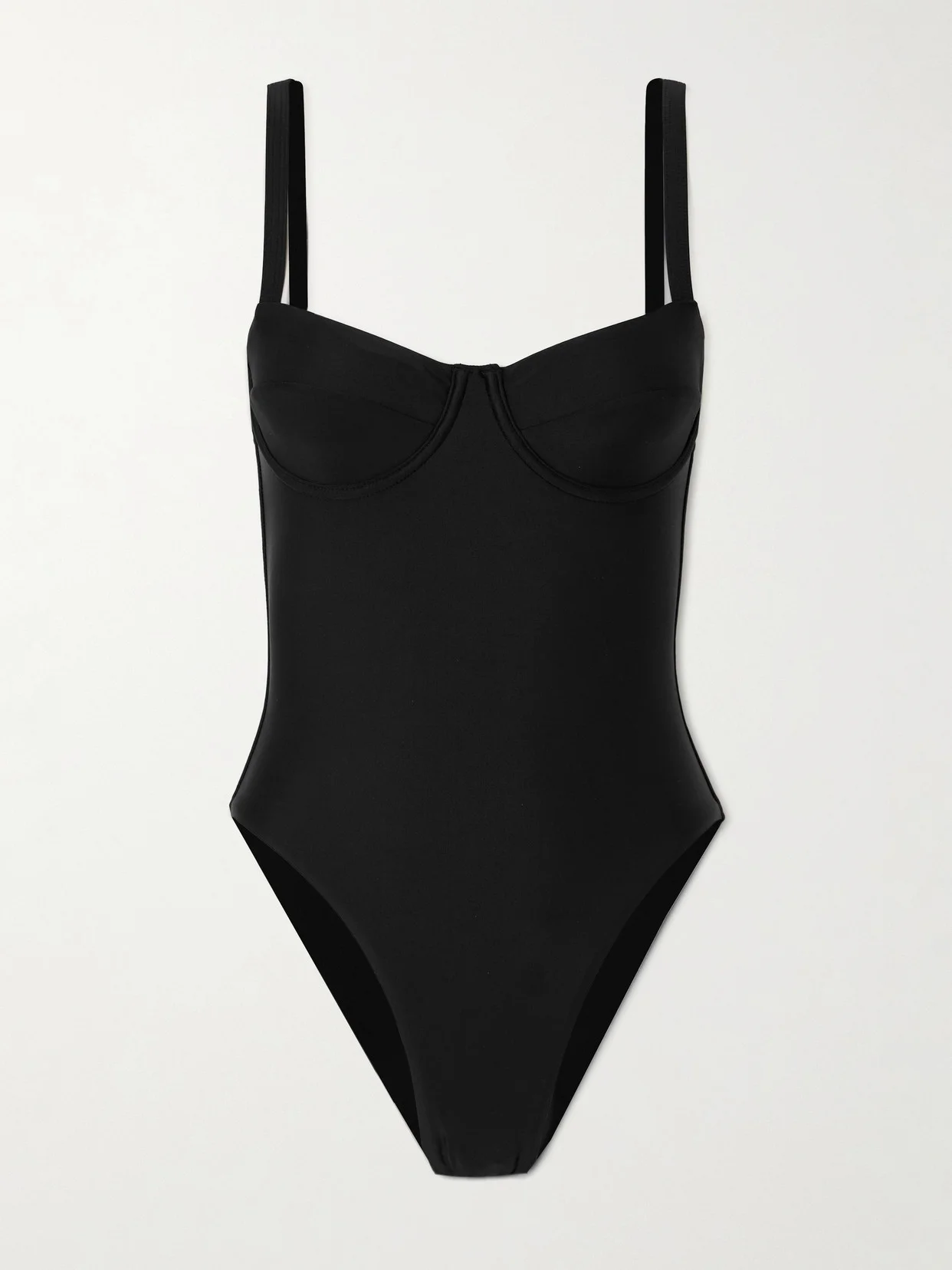 Matteau's swimsuit has balconette-style cups fitted with underwire to lift and shape your bust. It's made from smoothing stretch fabric and has high-cut legs. Style it as a bodysuit with a flowy skirt in the evenings.
