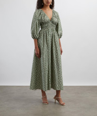DETAILS Cotton midi dress A-line silhouette Three-quarter-length sleeves V-neckline Elasticated empire waist Inseam pockets SIZE & FIT Model is 179cm/5'10.5"; Chest: 81cm; Waist: 64cm; Hip: 89cm and wears a size 2 COMPOSITION & CARE 100% Cotton Dry clean