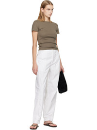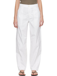 Tapered and loose-fit cotton twill cargo pants. · Belt loops · Four-pocket styling · Button fly · Darts at knees Supplier color: Chalk 100% cotton. Made in Turkey 261946F087006