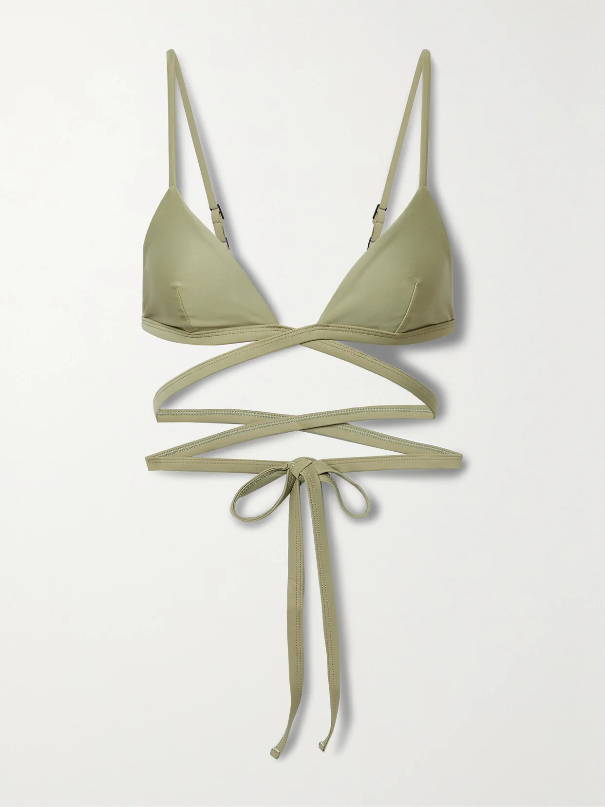 Wrap-effect Stretch-repreve Triangle Bikini Top