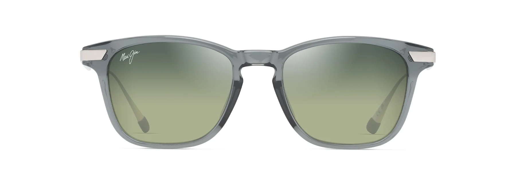 Polarized Classic Sunglasses "Cool square Mana‘olana updates an angular silhouette with a contemporary aesthetic. Designed with MauiBrilliant, experience style and protection with unparalleled versatility. Frame Details: Exclusive PolarizedPlus2 lens technology, Script logo on lens and temple, Signature native pattern on temple exterior and temple tips, Signature slash at hinge and temple tips" Product Details SKU: HTS623-14 Frame: Shiny Trans Grey with Silver Lens: Maui HT™ Lens Material: MauiBrilliant